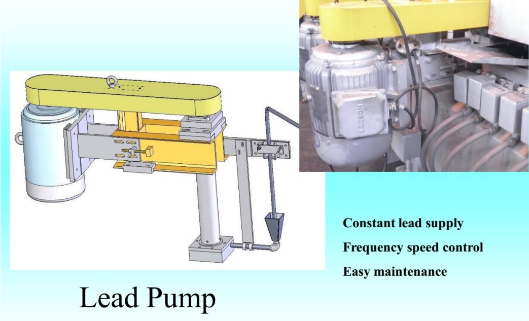 – Function : supply melted lead to mold by lead pump after melting lead ingot.